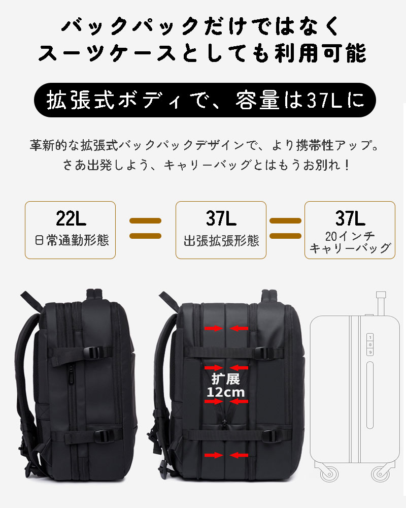 使用/17インチPC対応/拡張機能/多収納/出張時にスーツケース不要/背面セキュリティーポケット付き等の多機能ビジネスリュック。