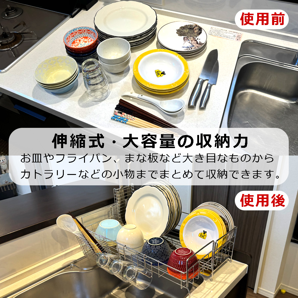シンク幅に合わせて調整可能。ご家庭のキッチンにぴったりフィット。